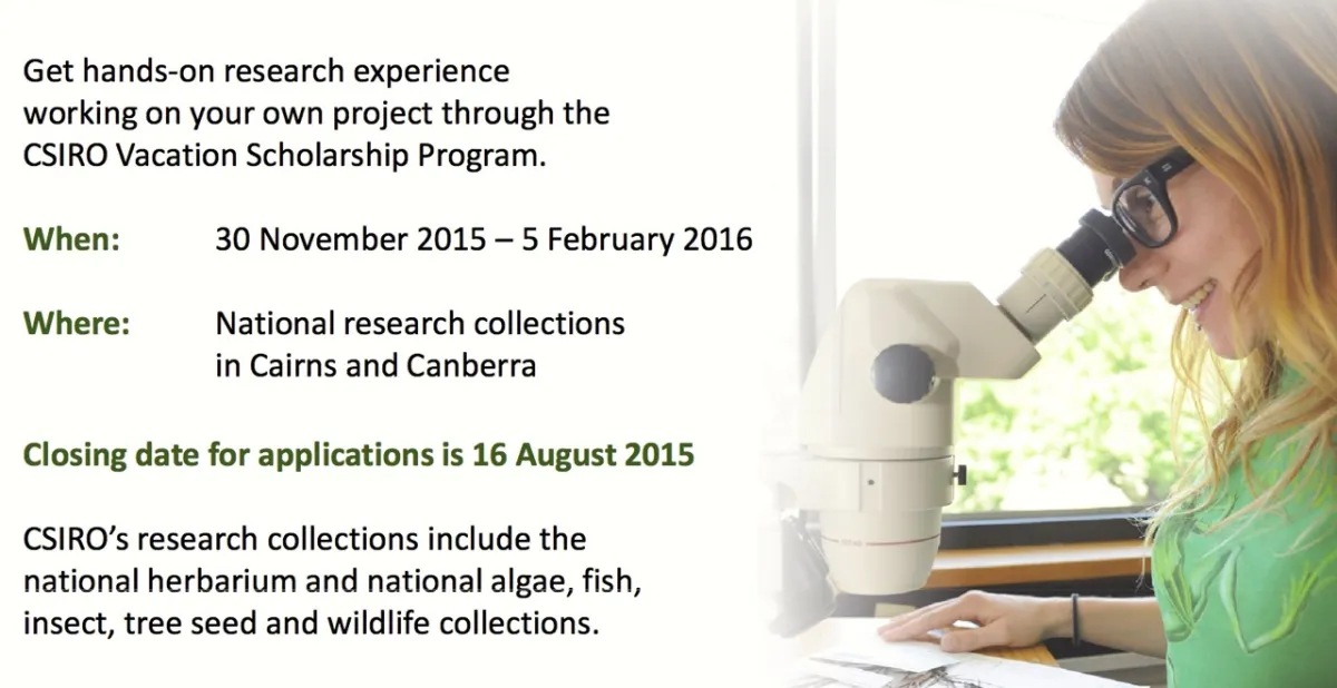 Applications now open for CSIRO's National Collections Vacation Scholarships
